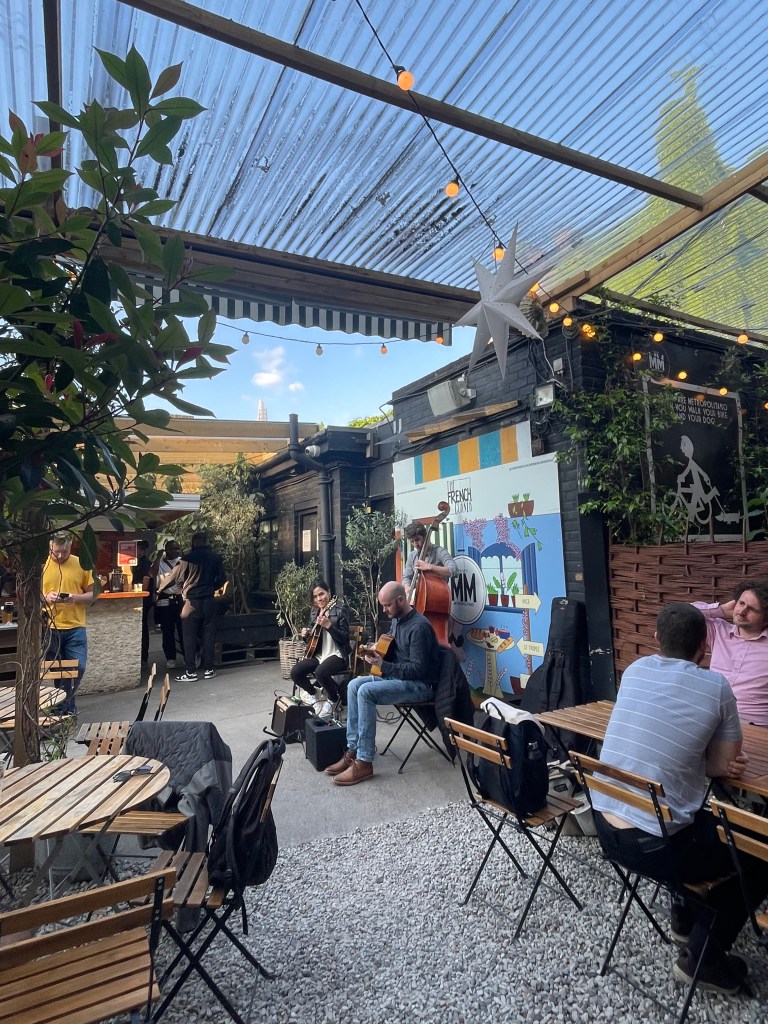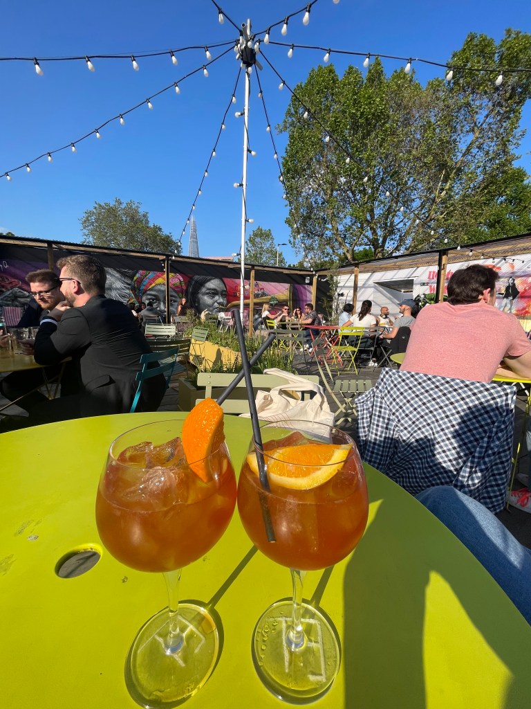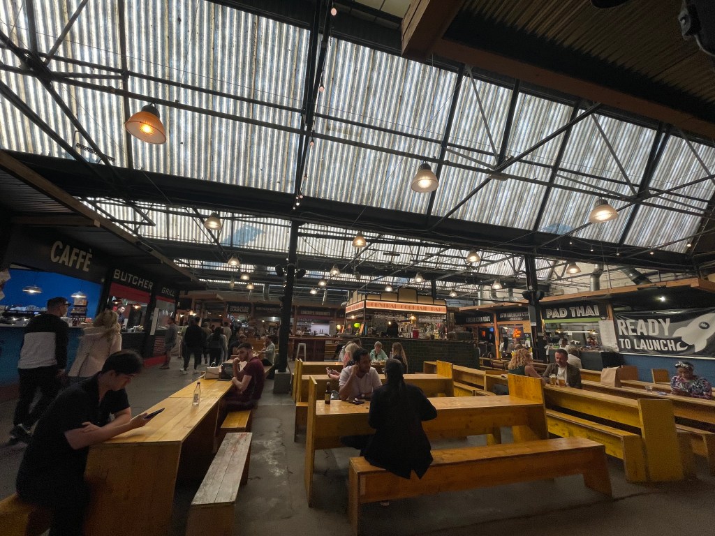 - After the museum, walk over to Elephant & Castle’s Mercato Metropolitano, an open-air food hall and beer garden with winding garden paths and nooks to enjoy a delicious + expansive selection of bites and sips. Free WiFi.