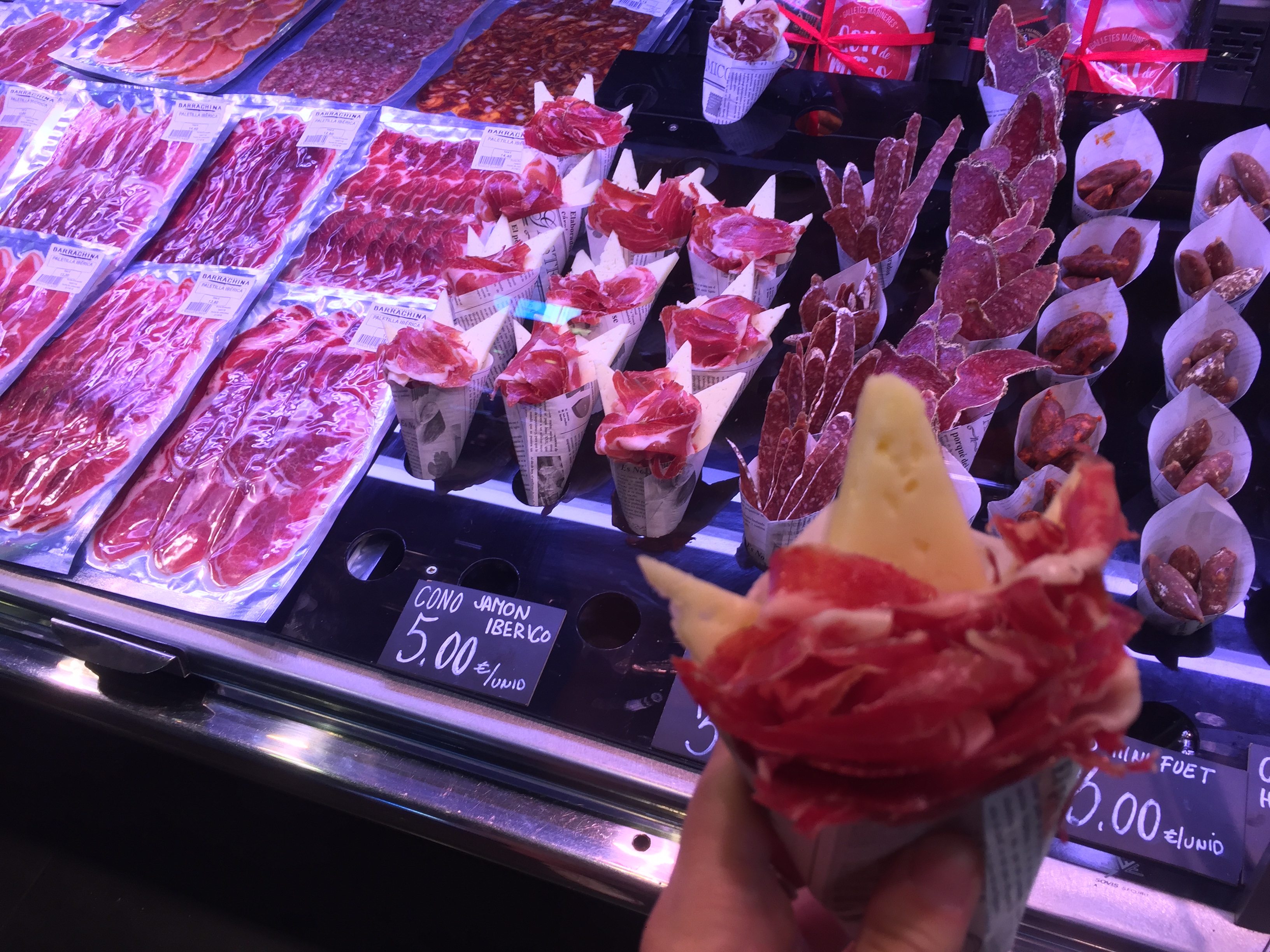 A must-stop open-air market along Las Ramblas.  Stop here to grab picnic supplies to take to the beach (think Jamón ibérico + manchego cones, fresh fruit, smoothies, spices, oils, candies). You could spend hours exploring the various stalls, sampling the food, and enjoying the buzz of the locals + tourists. Make sure to bring Euros and to visit Monday-Saturday as it’s closed on Sunday.