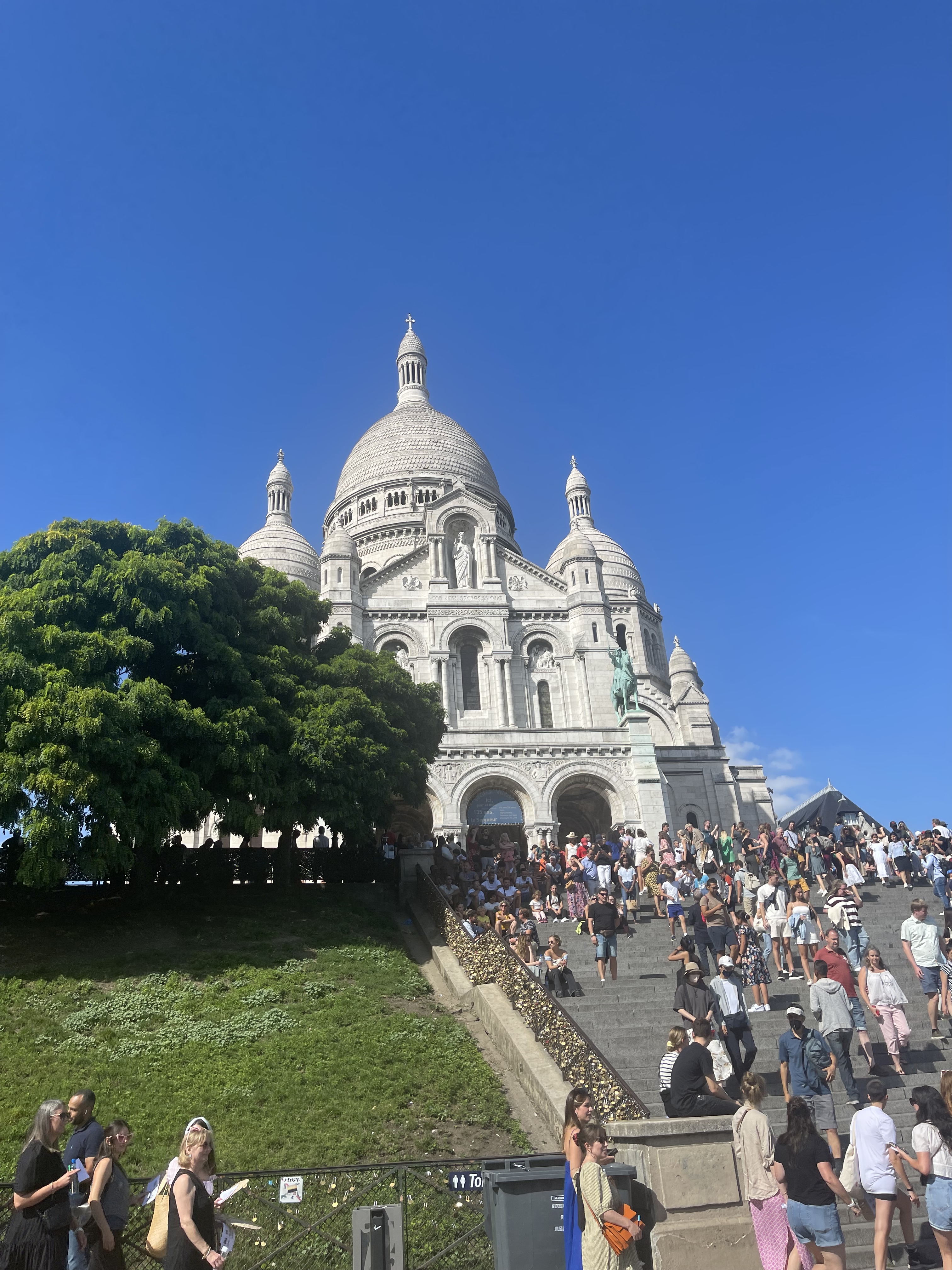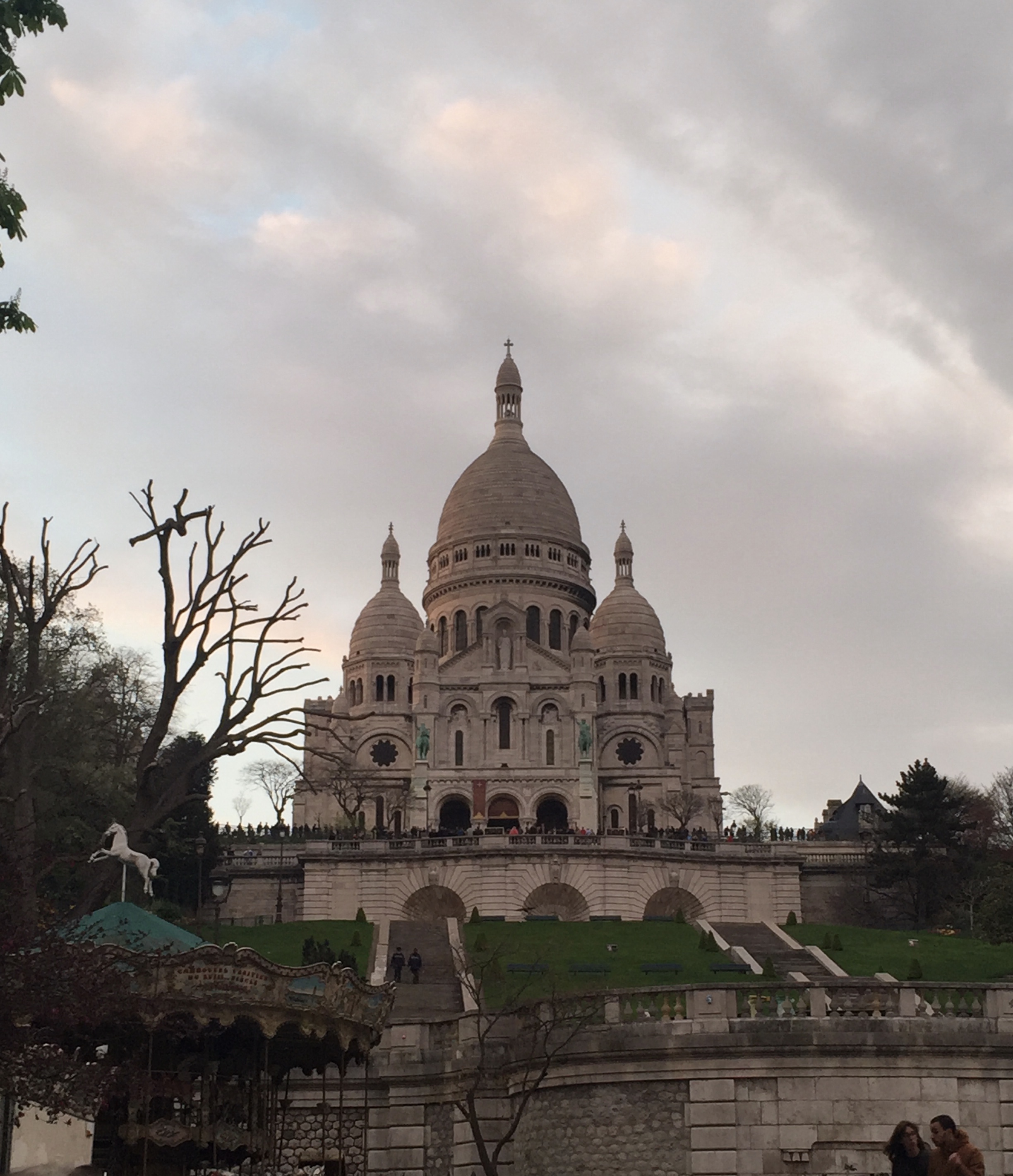 • Walk to Le Sacre Couer (Sacred Heart Basilica) for a panoramic view of Paris for the sunset – bring wine, enjoy the live music, and watch from the steps.