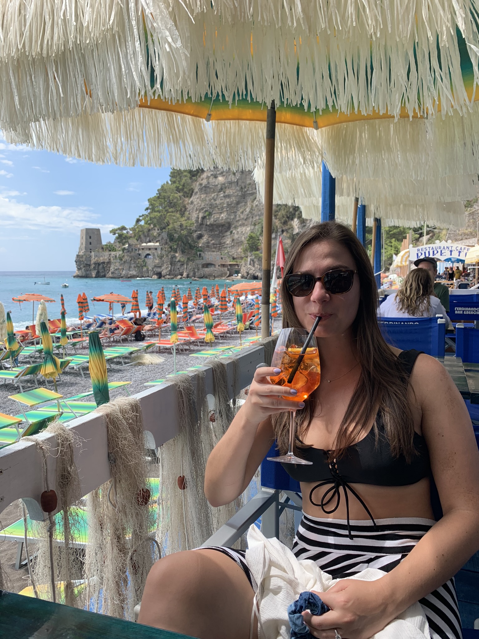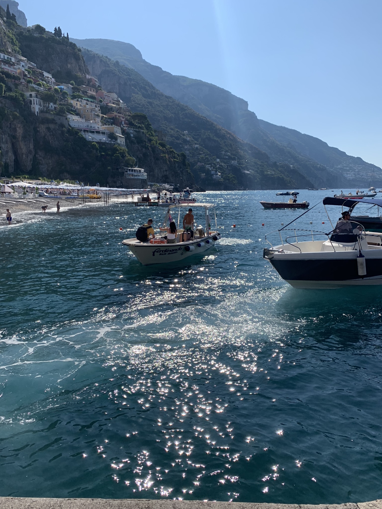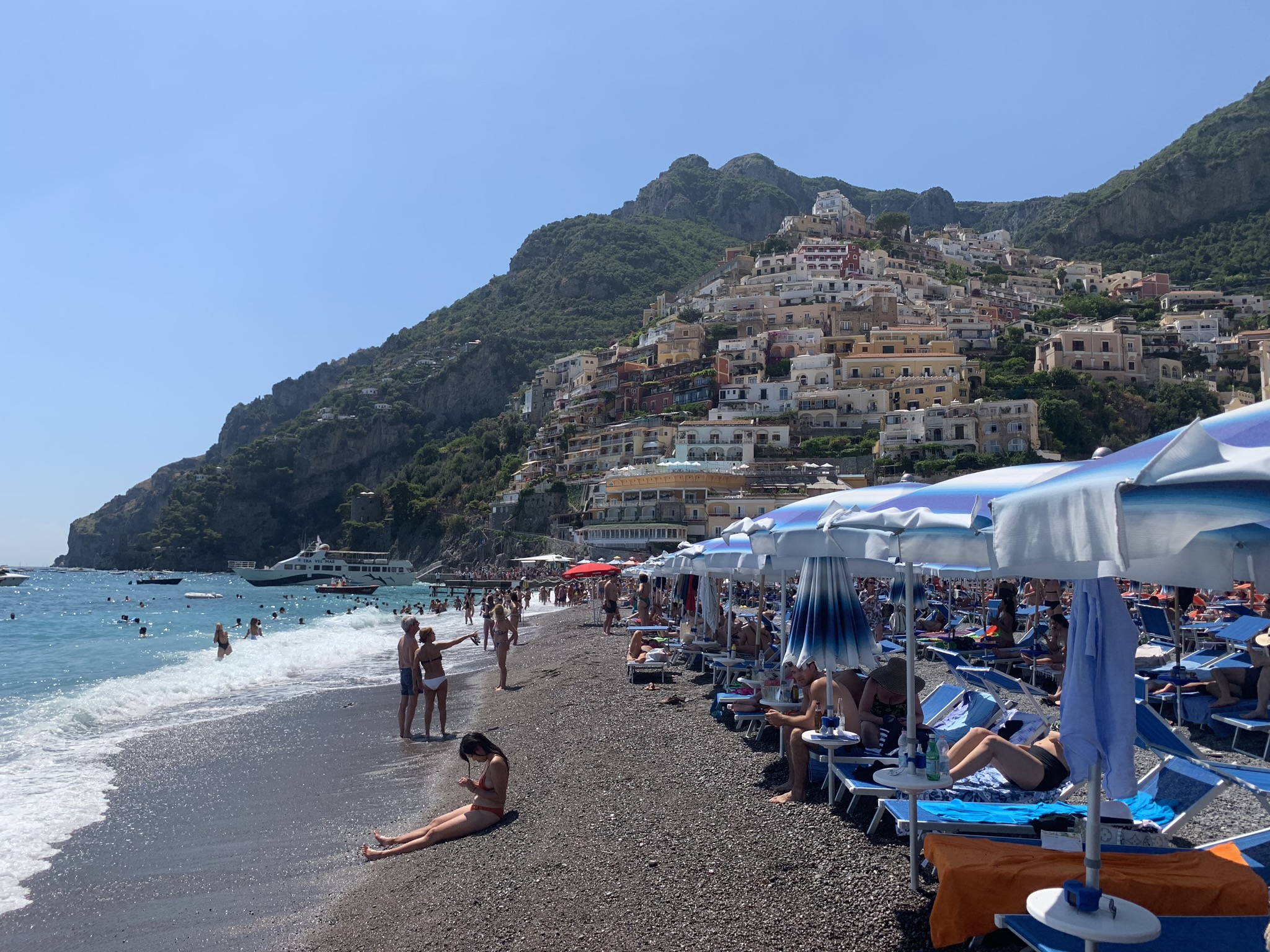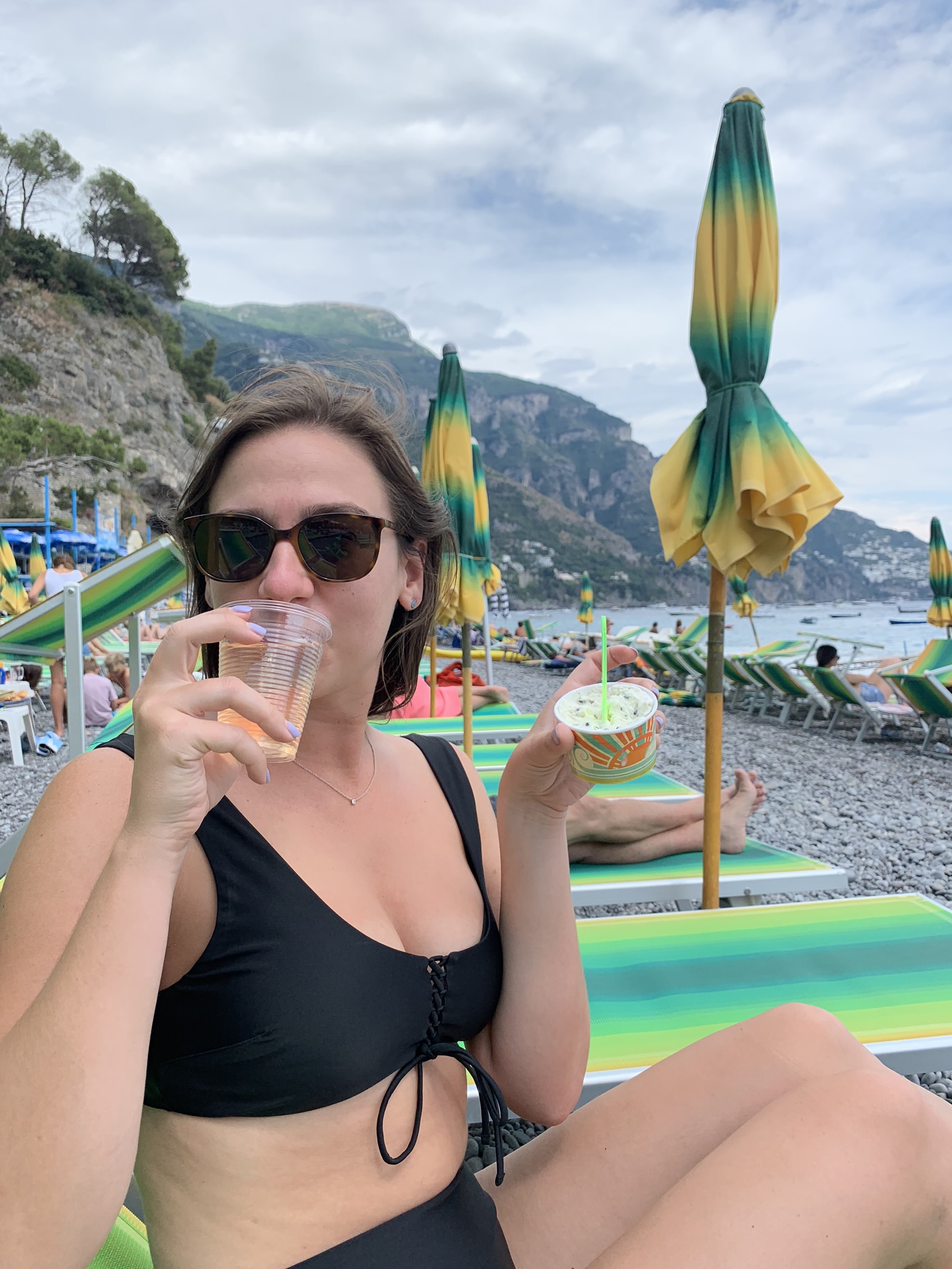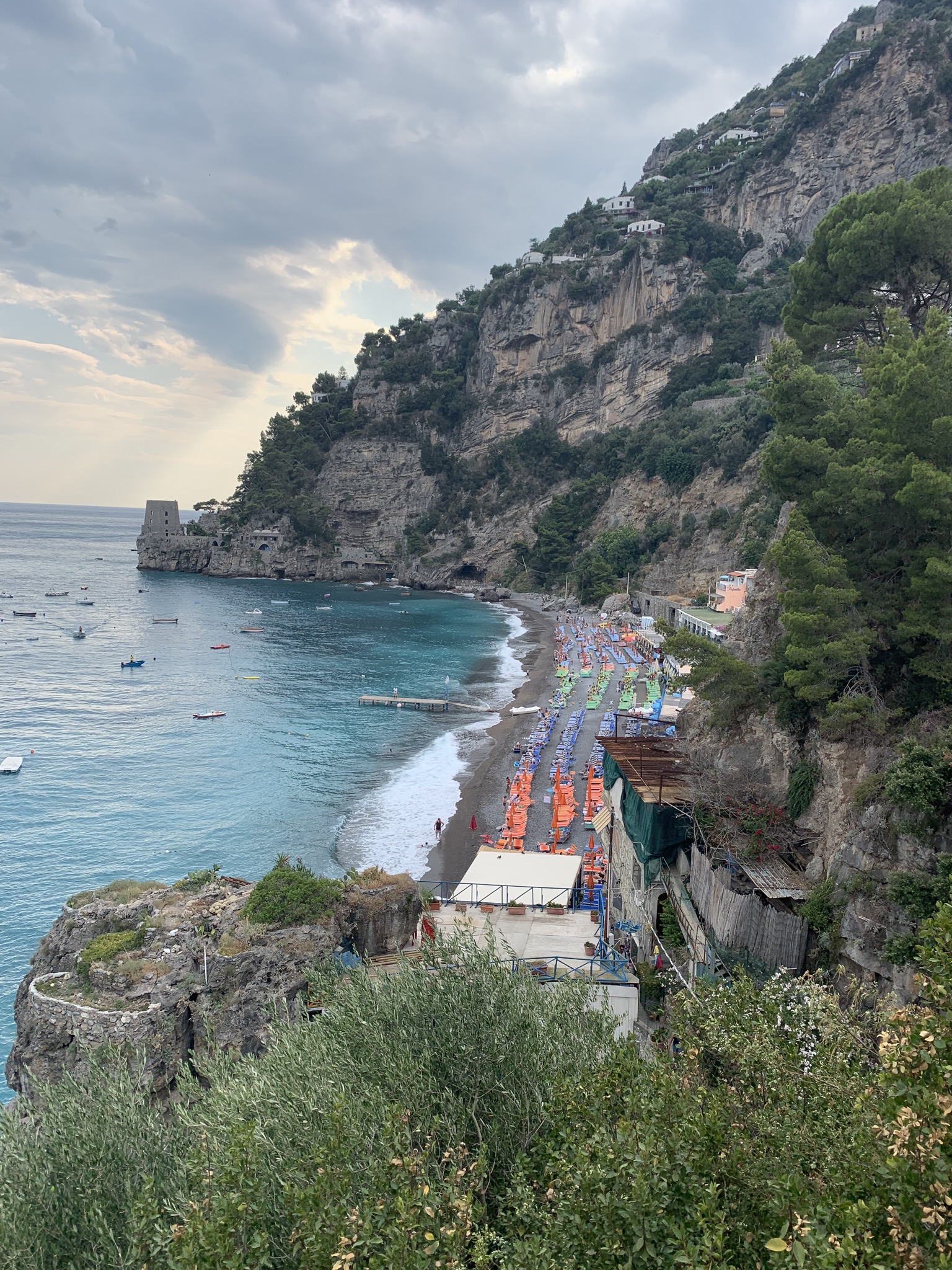 If looking to get away from the crowds and are up for an adventure to what we called “our secret beach”, map to Fornillo Beach. This beach is walking distance from the main drag, on the other side of the cliff from Positano. Although it does not boast the same picturesque Positano backdrop views, the vistas are stunning not only from the beach but especially on the adventurous paved (safe) hike along the cliff you will take there! Grab lunch at Da Ferdinando and then rent your beach chairs + umbrellas directly from the restaurant. You can also order food + gelato to your chair. We enjoyed the main Positano beach for our first day, but spent the rest of our beach days at Fornillo away from the crowds and fully soaking in the Dolce Vita!