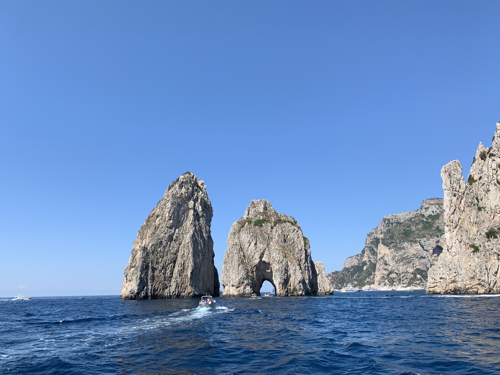 You cannot visit the Amalfi Coast without a day-trip (minimum) to the island of Capri. If staying in Positano, I’d recommend booking a private or shared small boat tour to Capri. for the day, as opposed to taking the crowded ferry. The trip by boat to Capri is approximately 1.5 hours, with stops for swims along the way, and is worth the trip itself for the stunning views of the Amalfi coastline from the turquoise waters. We found our boat tour on Viator. We skipped the ‘grotto’ tours to maximize our time on the island and to avoid the crowds, especially since the success of these tours is dependent on the weather / tides. Make sure to book a tour that includes light bites + lunch + drinks to enjoy and time for a dip into the water!