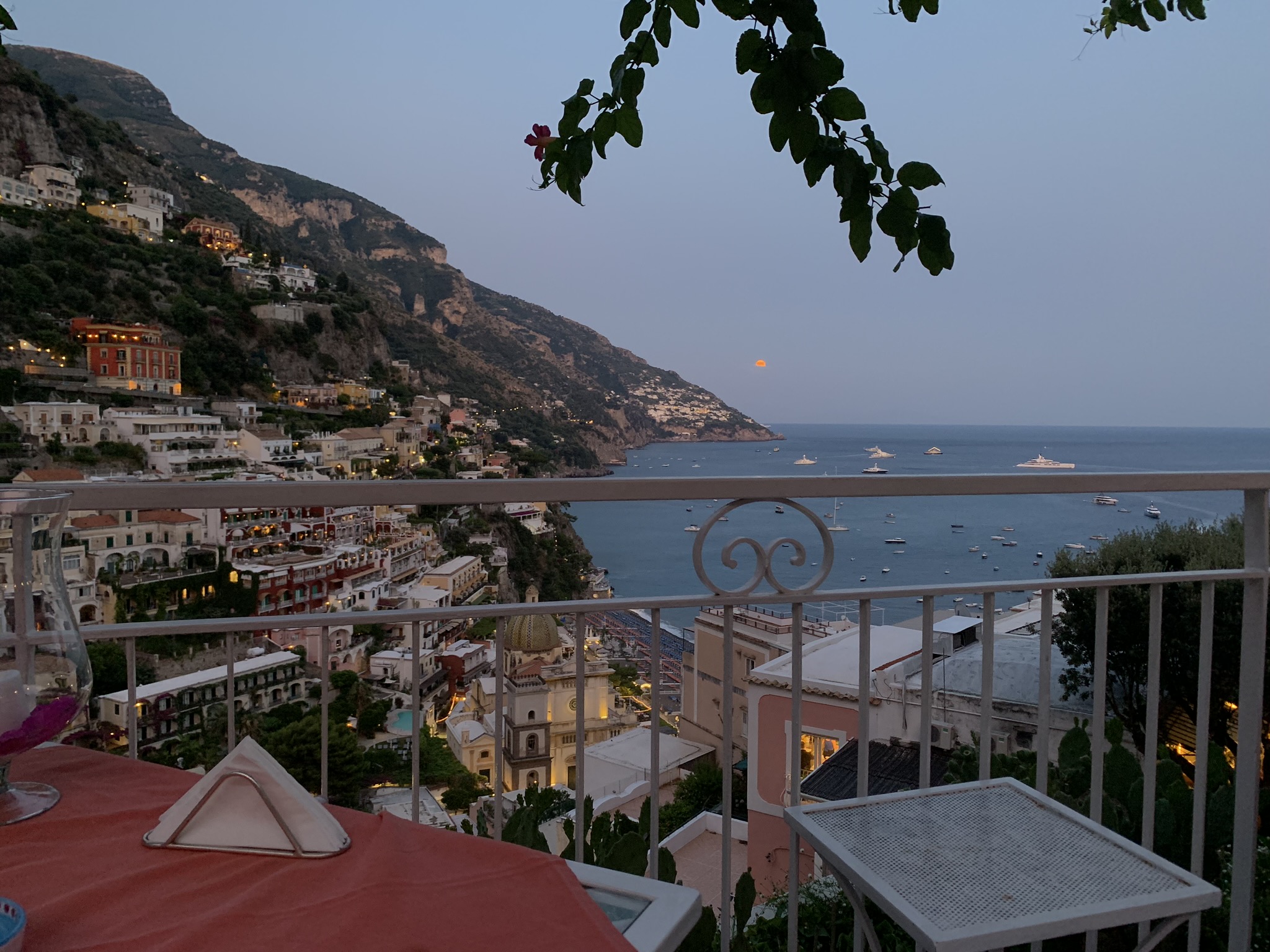 View from Il Tridente cocktail hour, from sunset to full moon rise