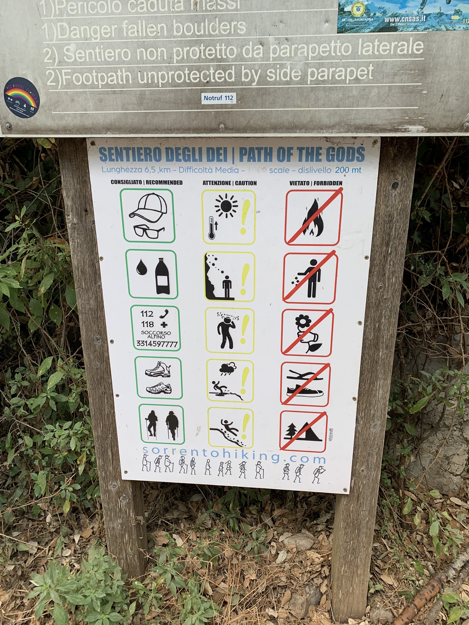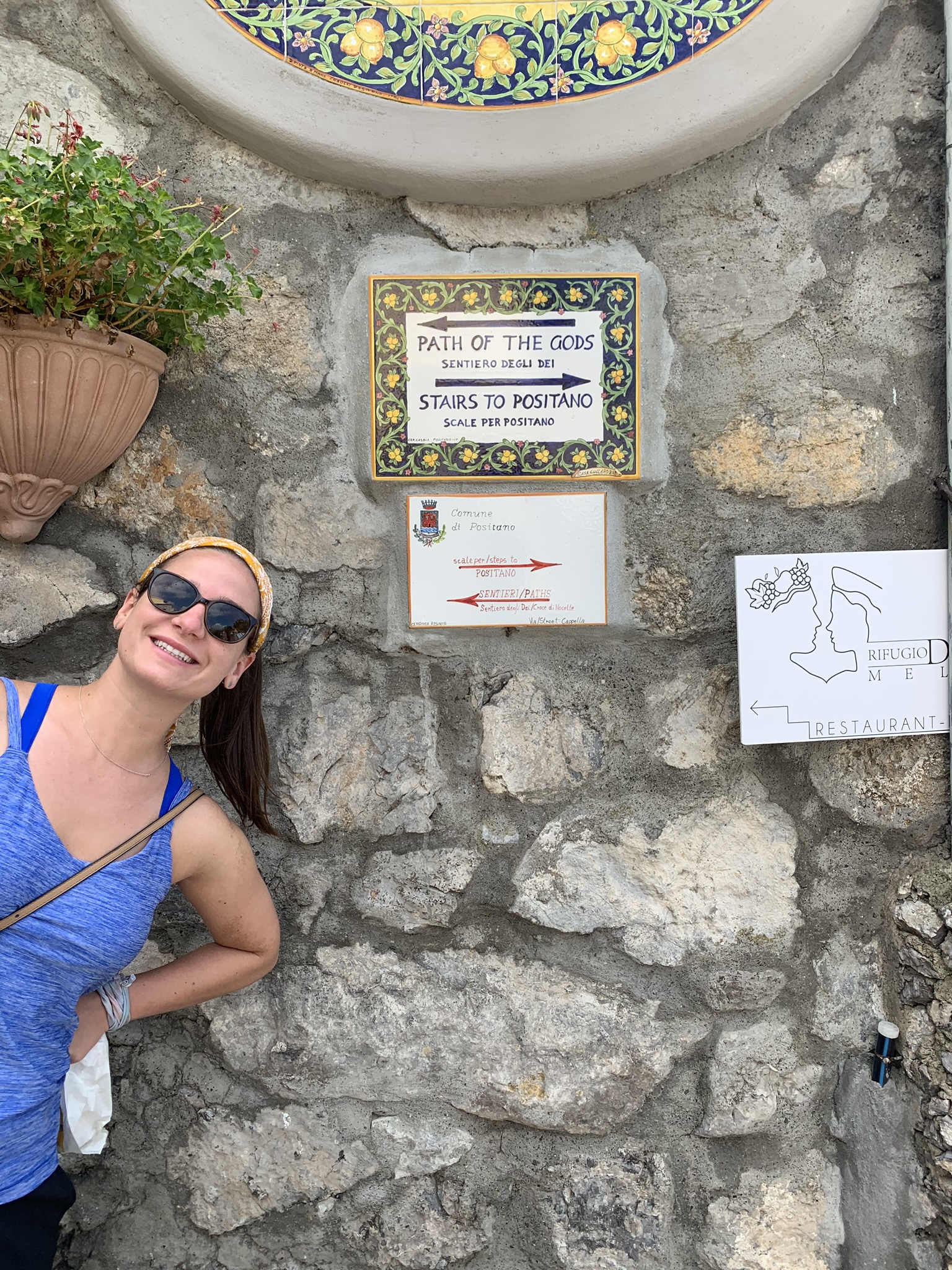 - By starting in Nocelle, we walked through town (Map to Via Pizzillo, 2, 84017 Positano SA, Italy) to a set of steps that led to the start of the hike, under the painted sign ‘Sentiero degli Dei’. We took the path along the coastline until the trail went inland towards Bomerano, and double backed to Nocelle to catch our bus back to Positano. This way, we enjoyed the most beautiful moments of the hike 2x.