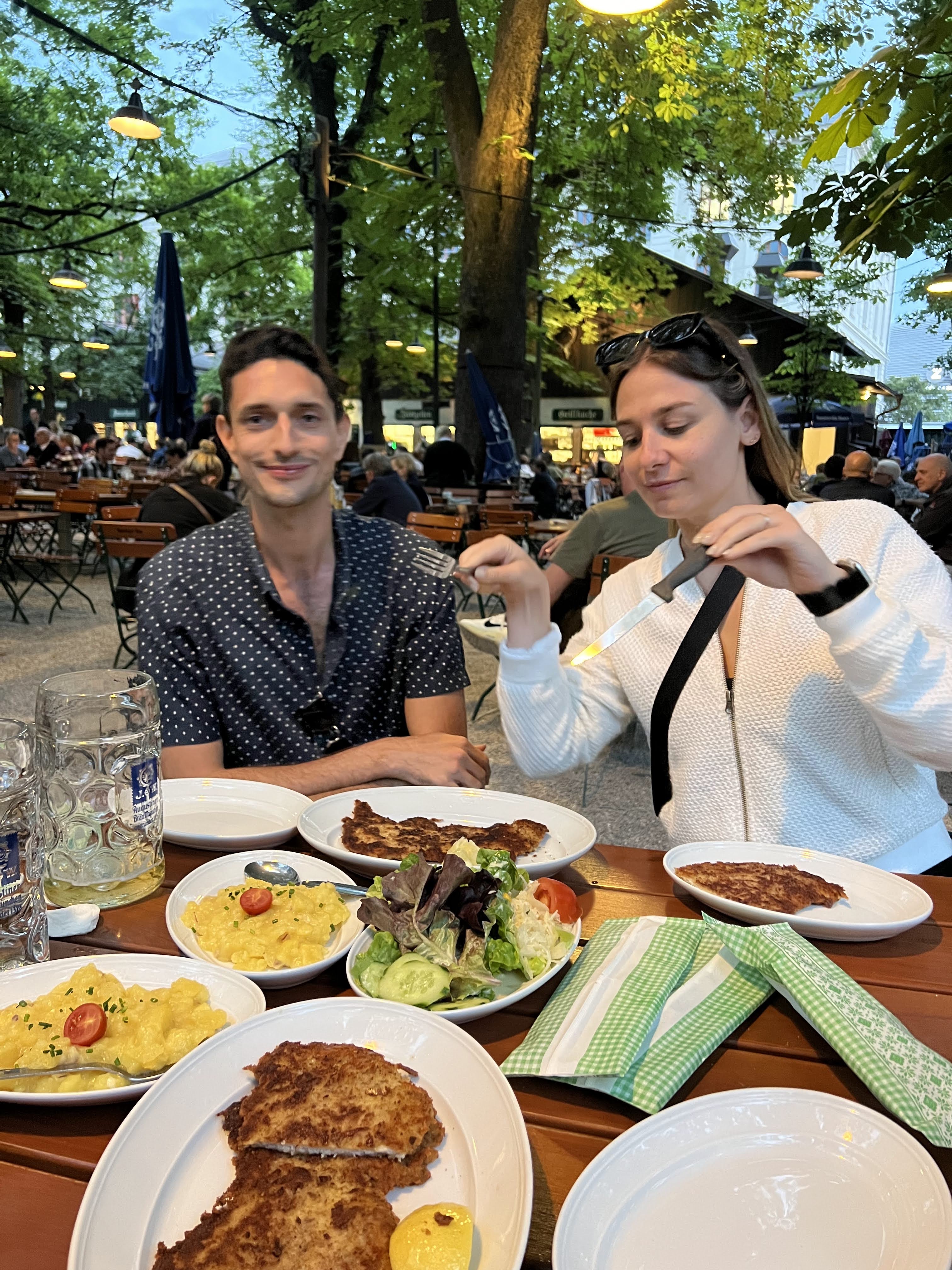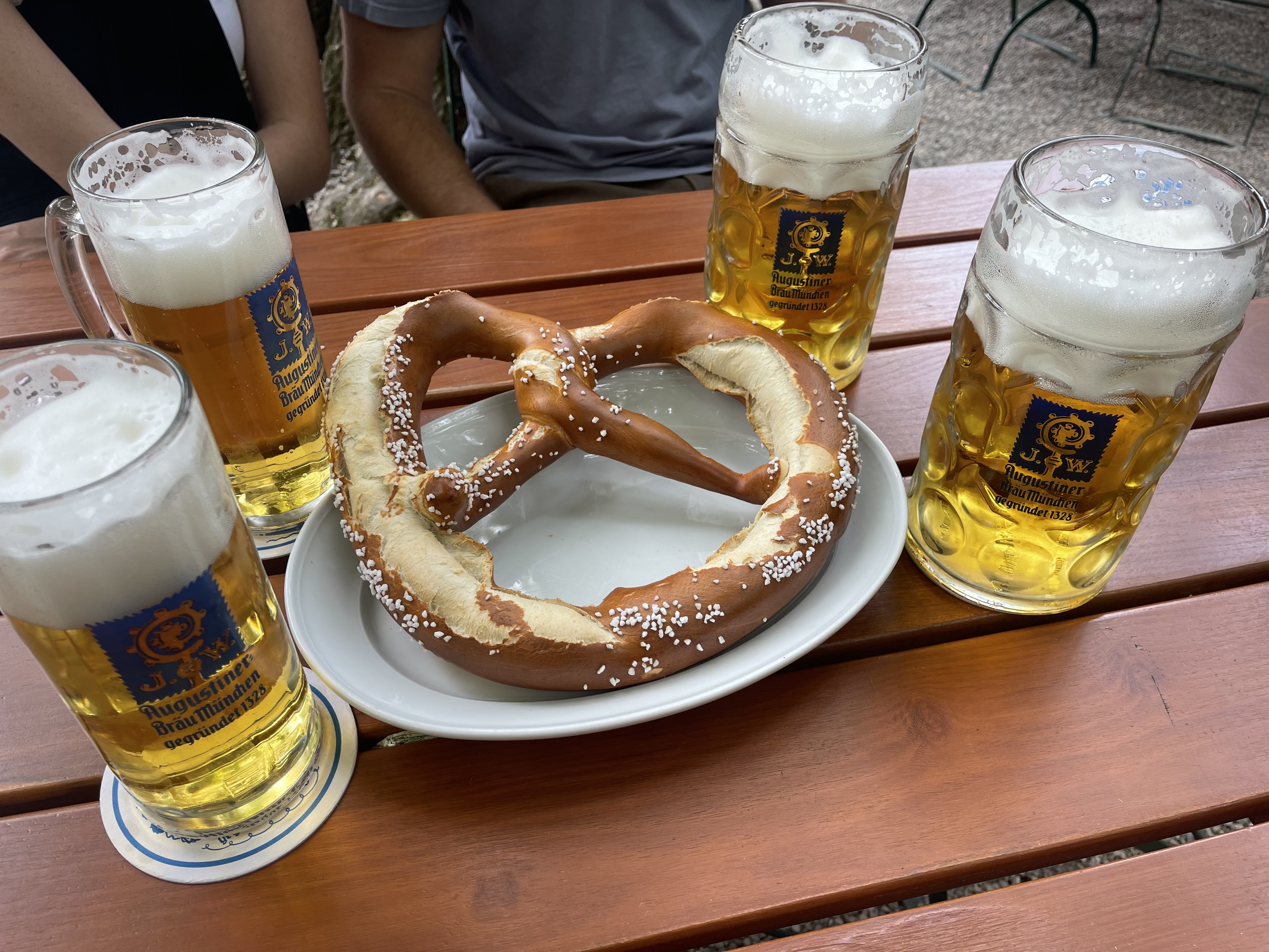 Located a short-walk from the endpoint of Fat Tire Bike tours, head to Augustiner-Keller for what was our most iconic, memorable experience of visiting Bavaria – a classic outdoor beer garden founded in the 1800s. The servers were much nicer + more accommodating here than at Hofbrau Haus, and the food was exceptional. We asked our server to take us on a Bavarian culinary journey and he hand selected multiple courses for us, paired with drinks and stories along our visit. Before we knew it, we had made new lifelong friends with our server, the Australian couple next to us, and had spent 6 hours at the garden!